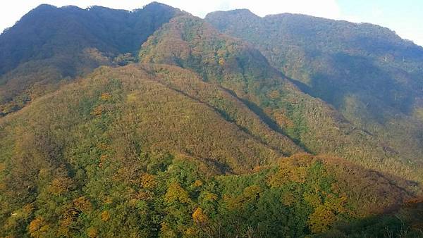這張照片很清楚顯示依序是保阿爾山、1689峰及北插天山,很漂亮的山毛櫸山脈。