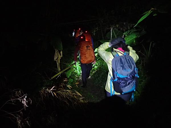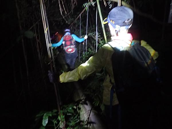 從北插下到小烏來登山口也很辛苦,尤其是疲憊的我們在黑夜中行走,加上颱風造成小烏來步道的損壞,一直在折磨著我們,終於在2300時出登山口,結束今18小時南北插縱走艱難的行程。