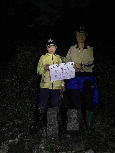1800時到達北插天山(H1727M),這是我上北插多次記錄中,還要點燈拍基點照。